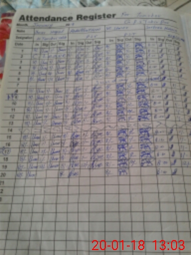 | CNIC | Full Name | Designation | R/C | Absence During Last Calender Month |