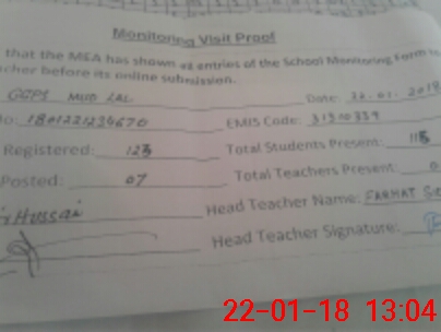 | Attendance Register | Head Teacher | MEA with School | Visit Proof |