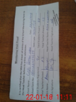 | Attendance Register | Head Teacher | MEA with School | Visit Proof |