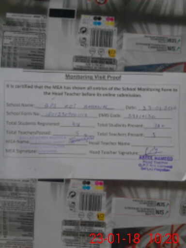| EMIS Code: 39210130 | Name of School: GPS KOT BAHAWAL | |||