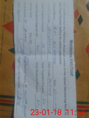 | Attendance Register | Head Teacher | MEA with School | Visit Proof |