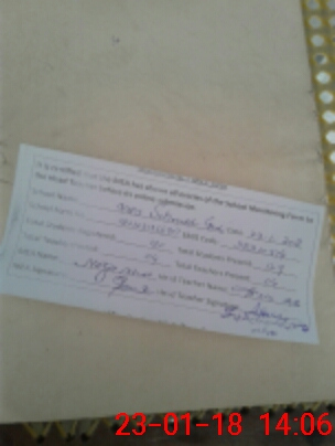 | School Visited by School Health & Nutrition Supervisor (No. of Visits) | 1 | Name1: | Anis Fatma | Name2: | O |