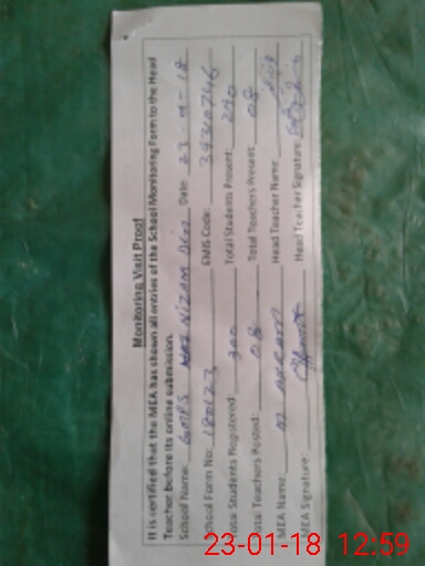 | Attendance Register | Head Teacher | MEA with School | Visit Proof |