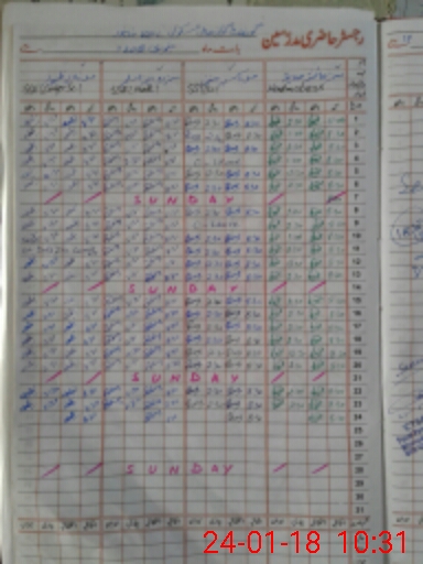 | CNIC | Full Name | Designation | R/C | Absence During Last Calender Month |