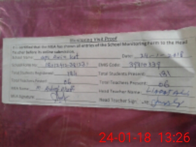 | Attendance Register | Head Teacher | MEA with School | Visit Proof |