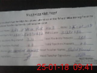 | Attendance Register | Head Teacher | MEA with School | Visit Proof |