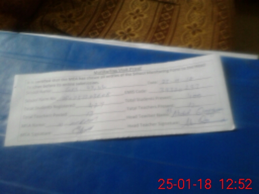 | Attendance Register | Head Teacher | MEA with School | Visit Proof |