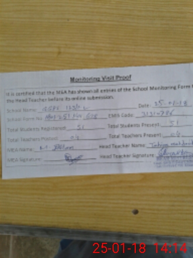 | Attendance Register | Head Teacher | MEA with School | Visit Proof |