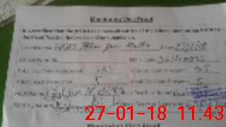 | Monitoring Date: 27-01-2018 | Start Time: 27-01-2018 11:25 AM | End Time: 27-01-2018 11:43 AM | Name of MEA: GH**** MU**** | |
