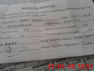 | Attendance Register | Head Teacher | MEA with School | Visit Proof |