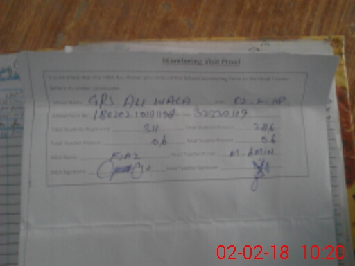 | Attendance Register | Head Teacher | MEA with School | Visit Proof |
