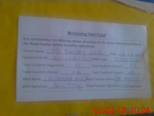 | EMIS Code: 35430302 | Name of School: GPS BAHRIAN WALA | |||