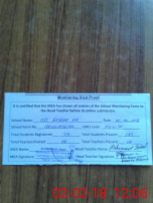 | Attendance Register | Head Teacher | MEA with School | Visit Proof |