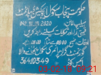 | EMIS Code: 36410349 | Name of School: GGPS PATHANEY WALA, KABIRWALA | |||