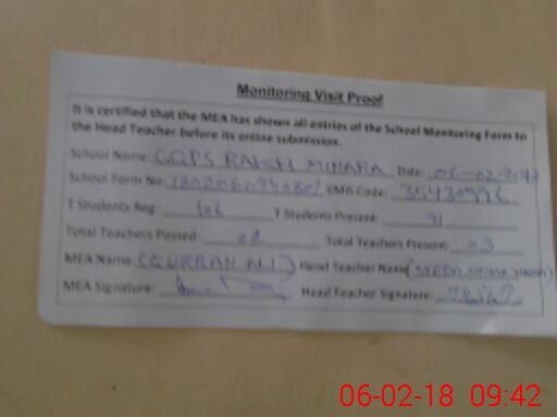 | Certified that this School was Inspected by the Undersigned MEA/DMO Today and the Information Stated Above is as Per Record. | |||||