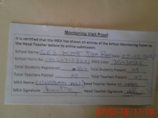 | EMIS Code: 35430126 | Name of School: GES KOT DIYA RAM | |||