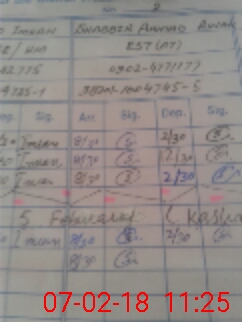 | CNIC | Full Name | Designation | R/C | Absence During Last Calender Month |