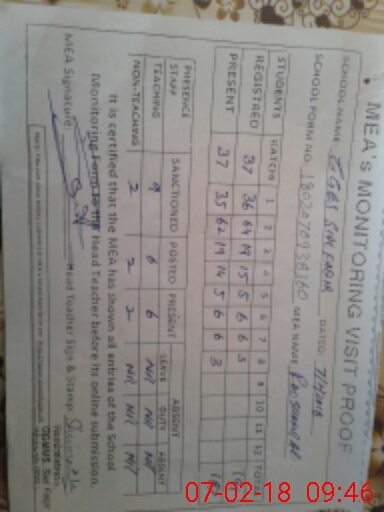| Attendance Register | Head Teacher | MEA with School | Visit Proof |