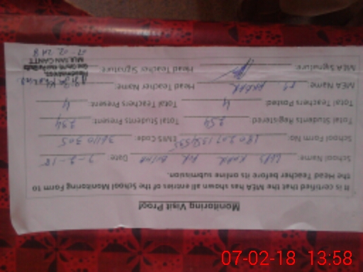 | Certified that this School was Inspected by the Undersigned MEA/DMO Today and the Information Stated Above is as Per Record. | |||||