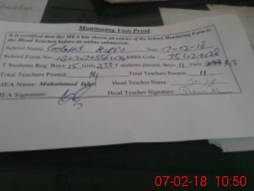 | Certified that this School was Inspected by the Undersigned MEA/DMO Today and the Information Stated Above is as Per Record. | |||||