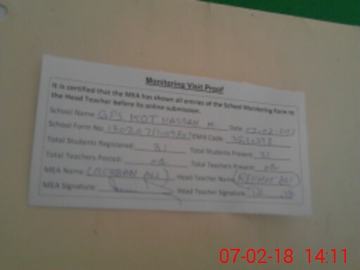 | EMIS Code: 35430398 | Name of School: GPS DERA HASSAN MUHAMMAD | |||