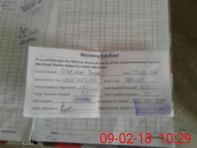 | Total no. of Classrooms: 2 No. of Classrooms Used for Teaching: 2 No. of Classrooms Storing Old Furniture, FTBs, etc: 0Comments if Any: NSB BALANCE IS UPTO 30 OCTOBER 2017 |