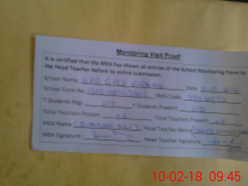 | Certified that this School was Inspected by the Undersigned MEA/DMO Today and the Information Stated Above is as Per Record. | |||||