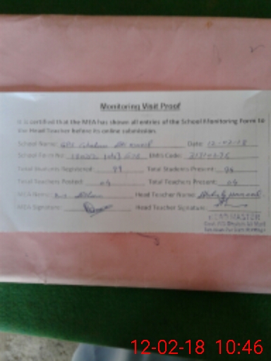 | EMIS Code: 31310276 | Name of School: GPS GHULAM ALI MARIL | |||