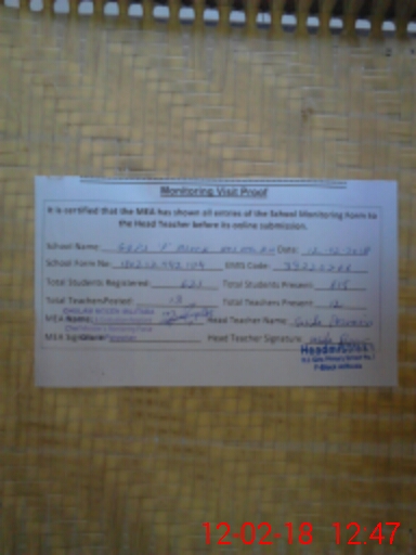| Certified that this School was Inspected by the Undersigned MEA/DMO Today and the Information Stated Above is as Per Record. | |||||