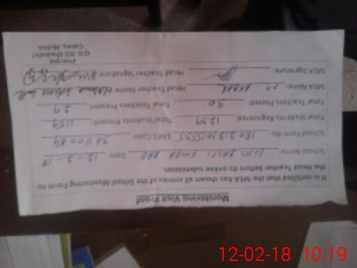 | Attendance Register | Head Teacher | MEA with School | Visit Proof |