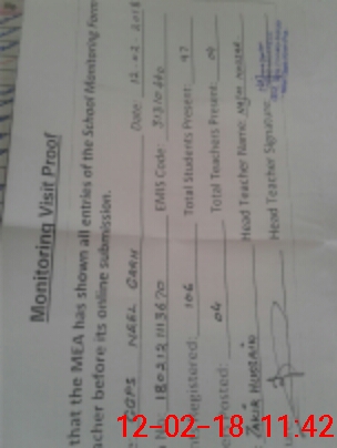 | Attendance Register | Head Teacher | MEA with School | Visit Proof |