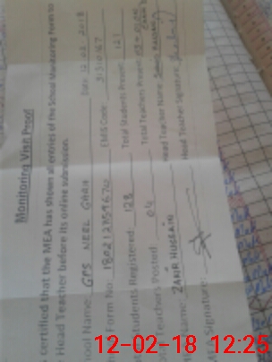 | Attendance Register | Head Teacher | MEA with School | Visit Proof |