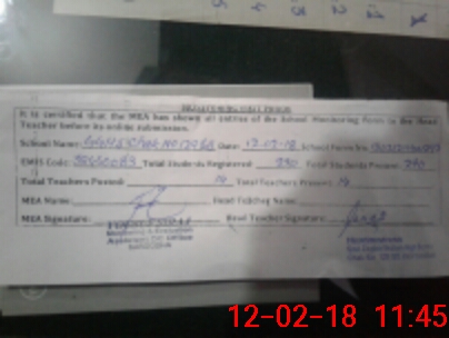 | Certified that this School was Inspected by the Undersigned MEA/DMO Today and the Information Stated Above is as Per Record. | |||||