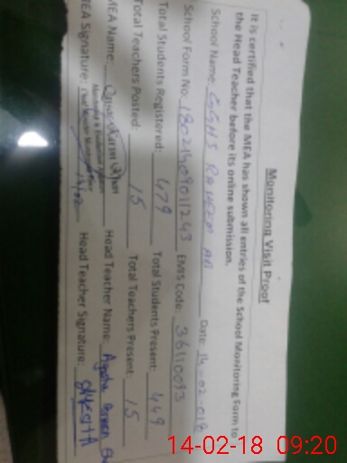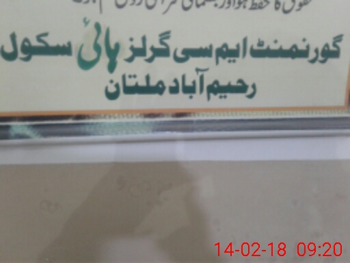 | EMIS Code: 36110093 | Name of School: GGHS MC RAHIM ABAD MULTAN | |||