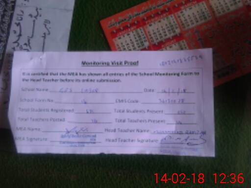 | Certified that this School was Inspected by the Undersigned MEA/DMO Today and the Information Stated Above is as Per Record. | |||||