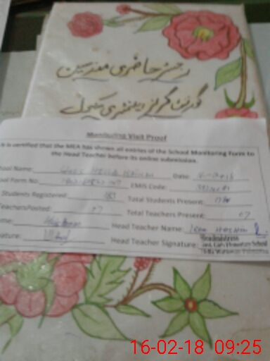 | Attendance Register | Head Teacher | MEA with School | Visit Proof |
