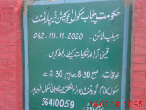 | EMIS Code: 36410059 | Name of School: GHS FARID PUR, SARAI SIDHU | |||