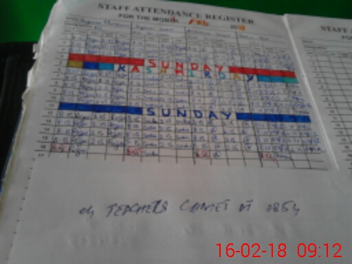 | Total no. of Classrooms: 5 No. of Classrooms Used for Teaching: 5 No. of Classrooms Storing Old Furniture, FTBs, etc: 0Comments if Any: All teachers came at school at 0854am Marked latecomer FTF not charged |