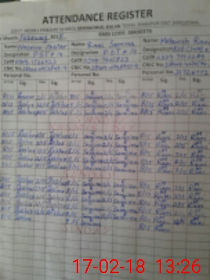 | CNIC | Full Name | Designation | R/C | Absence During Last Calender Month |