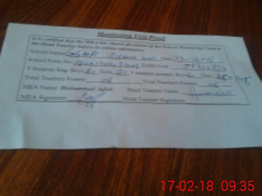 | Attendance Register | Head Teacher | MEA with School | Visit Proof |