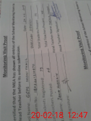 | Attendance Register | Head Teacher | MEA with School | Visit Proof |