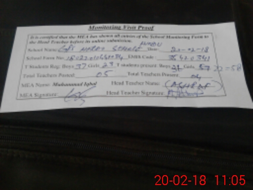 | Attendance Register | Head Teacher | MEA with School | Visit Proof |