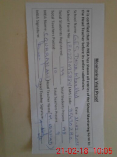 | EMIS Code: 35430280 | Name of School: GES DERA KHURSHEED HIRAN MINAR | |||