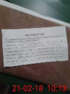 | Monitoring Date: 21-02-2018 | Start Time: 21-02-2018 09:35 AM | End Time: 21-02-2018 10:14 AM | Name of MEA: Eh**** Ba**** Bh**** | |