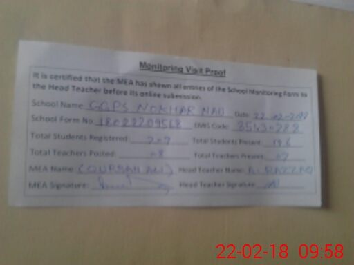 | EMIS Code: 35430788 | Name of School: GGPS MODEL NOKHAR NAU | |||