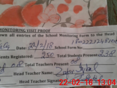 | Attendance Register | Head Teacher | MEA with School | Visit Proof |