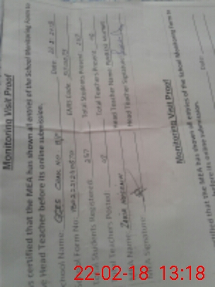 | Attendance Register | Head Teacher | MEA with School | Visit Proof |
