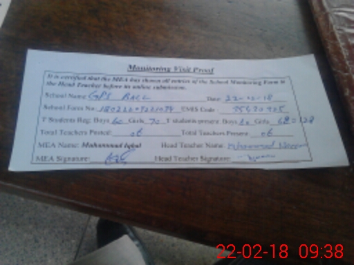 | Attendance Register | Head Teacher | MEA with School | Visit Proof |