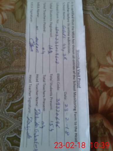 | Certified that this School was Inspected by the Undersigned MEA/DMO Today and the Information Stated Above is as Per Record. | |||||