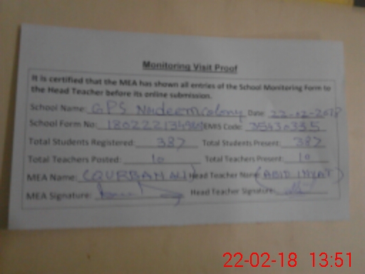 | EMIS Code: 35430335 | Name of School: GPS NADEEM COLONY FAROOQABAD | |||
